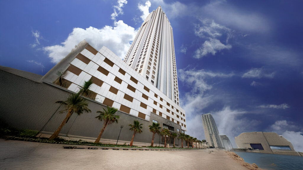 A residential skyscraper, on a land size of 10,000m2 the 46-floor highest tower in the Eastern Province with a height of 200 m / 656 ft and a capacity of 276 rooms. Duration: 36 Months Amount: 830,000,000.00 SR